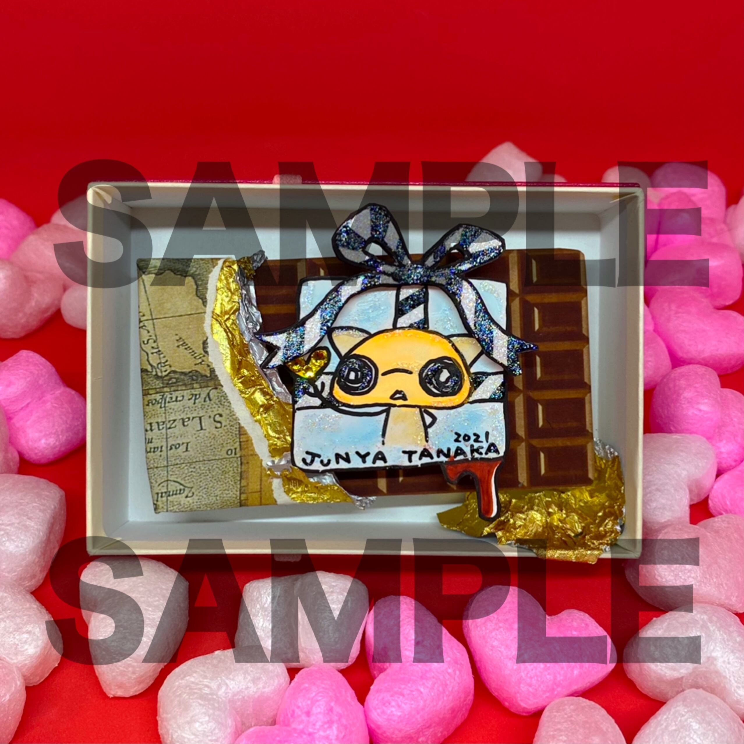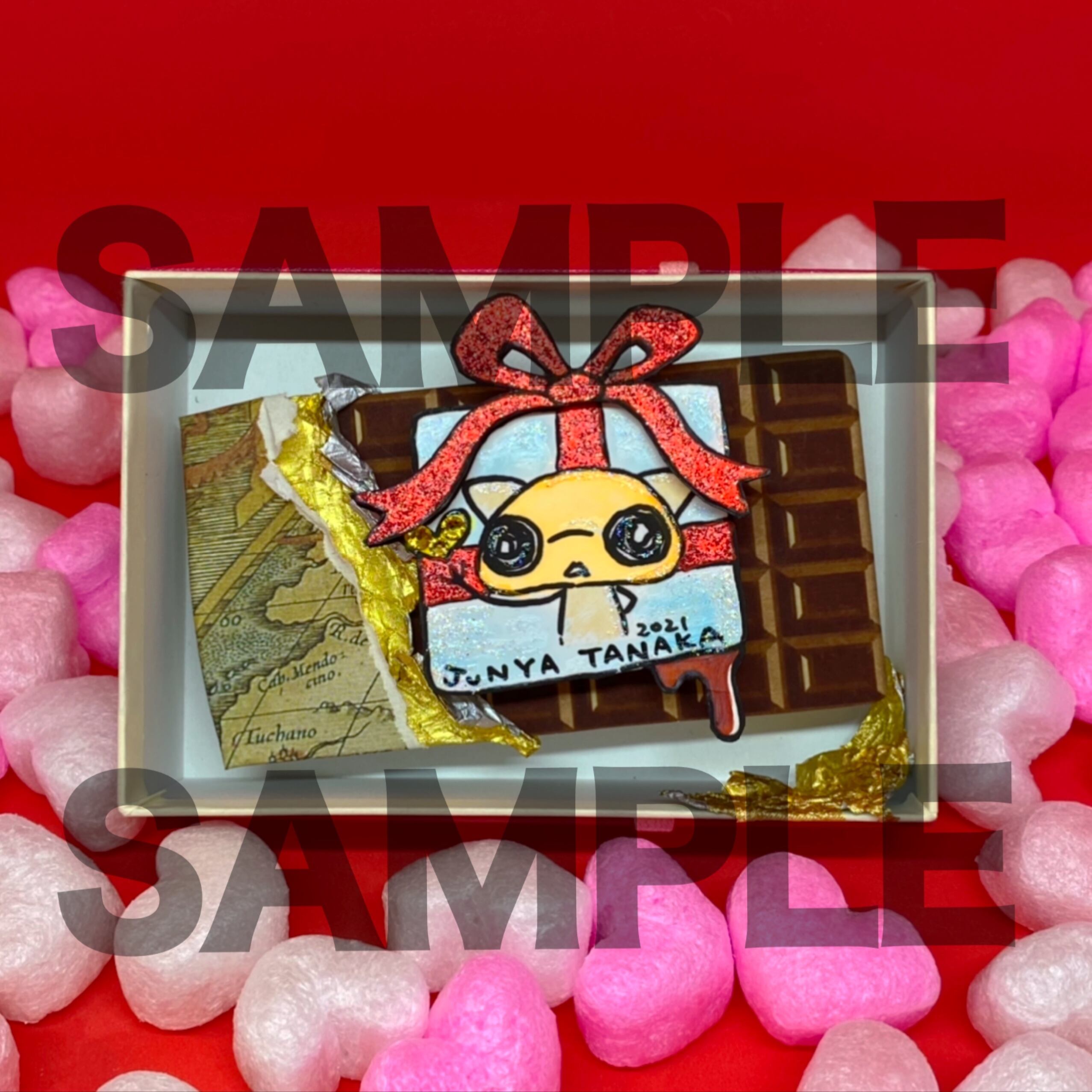 ひとつひとつ手作りで発色がよいアクリル絵具と、ほんわか温かい水彩でチョコをイメージしラメとスワロを使い立体で仕上げます☆