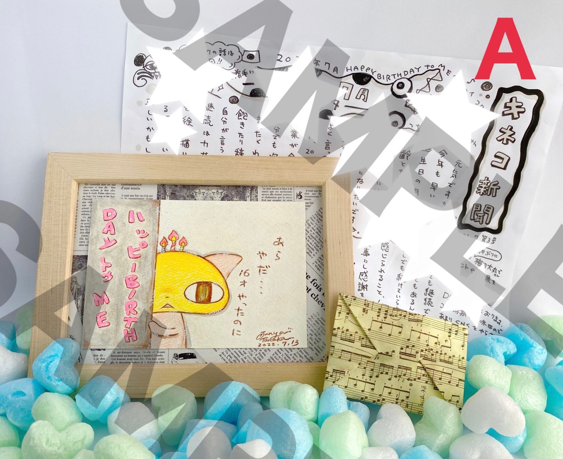 〜2022年7月 心を込めて描くバースデーバージョンの【一言キネコ 額付き】+【誕生メッセージカード】+【キネコ新聞7月号】付きのセットです。