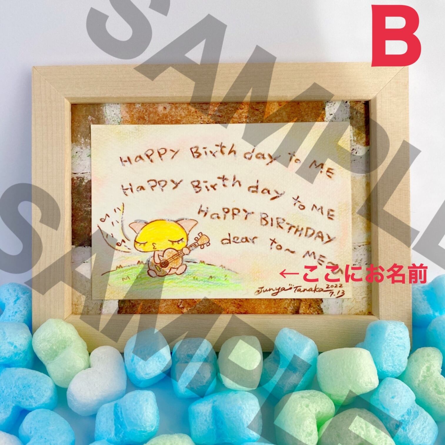 〜2022年7月 心を込めて描くバースデーバージョンの【一言キネコ 2種類 額付き】+【誕生メッセージカード】+【キネコ新聞7月号】付きのセットです。